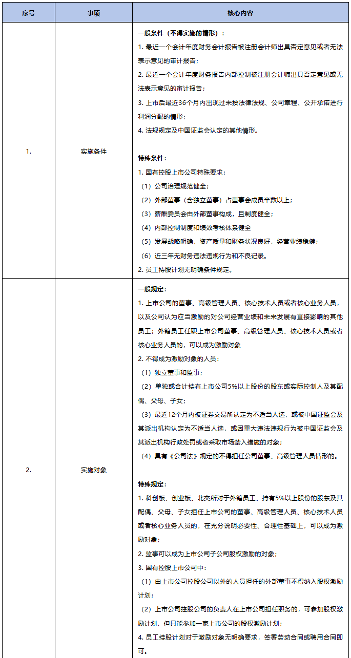 前言:上市公司股權激勵作為上市公司公司治理的重要部分,其實際效果對于提升上市公司經營業績、推動上市公司價值投資、促進上市公司高質量發展均有著至關重要的作用。與非上市公司股權激勵不同,上市公司股權激勵不僅受到多層次的法律法規的約束,更受到監管、市場及社會層面的不同影響,因此,在制定和實施上市公司股權激勵時,企業應該在立足激勵目的及企業實際情況的基礎上,結合法律規定、監管要求、市場股價、社會效應等因素,綜合考慮和完善方案。本文將從法律實務出發,針對擬IPO企業的股權激勵審核要點及上市公司的股權激勵注意事項進行闡述,供股權激勵制定者參考。