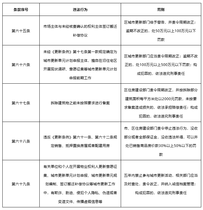 實施主體在拆除建筑物并辦理完成注銷登記、受讓國有建設用地使用權等手續后,對所申報的城市更新地塊進行開發建設。在開展開發建設活動前過程中,市場主體應當注意嚴格按照規定完成協議簽訂、計劃申報、意愿征集、備案等各項法定程序,否則需根據《深圳經濟特區城市更新條例》第六十五至六十九條的規定承擔相應的法律責任。