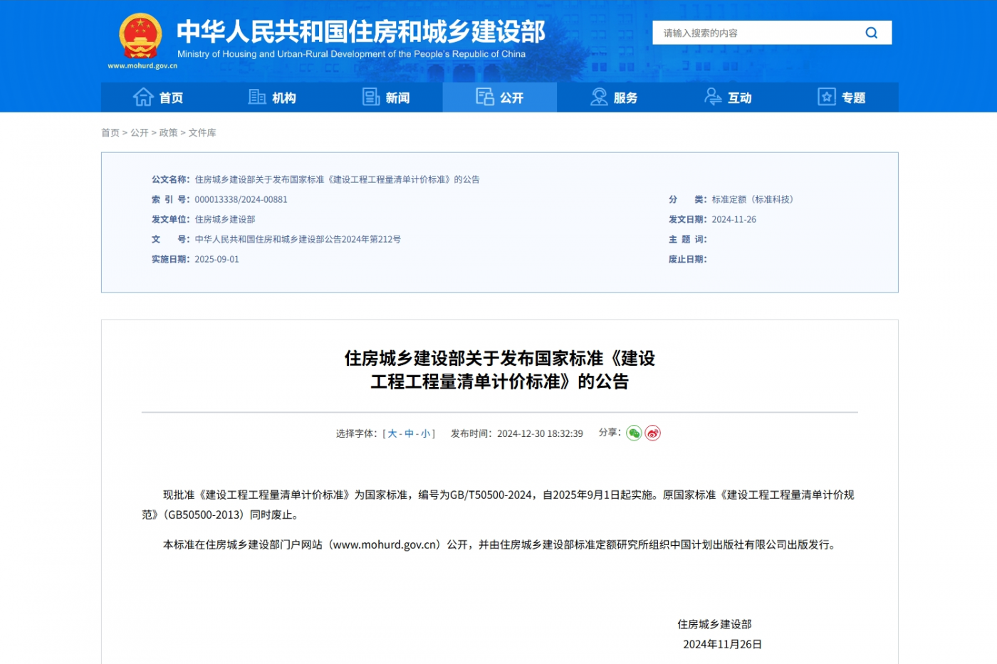 隨著我國建筑業市場化、法治化進程的不斷深化,工程造價管理正朝著更加科學、規范、透明的方向邁進。住房和城鄉建設部最新發布的《建設工程工程量清單計價標準》(GB/T 50500-2024)(下稱“新《標準》”),將于2025年9月1日正式實施,同時廢止2013版標準。作為連接工程建設與法律合規的關鍵紐帶,新《標準》的出臺不僅重塑了工程計價的技術規則,更對建設工程施工合同的訂立、履行、變更、結算及爭議解決等環節產生了深遠的法律影響。本文將從法律實務角度,對新《標準》的核心規定進行解讀,剖析其法律意涵,并為建設單位、施工單位等市場主體提供合規建議。筆者后續將擇機分享對新《標準》不同角度的法律觀察和研究,以期各界方家指正。