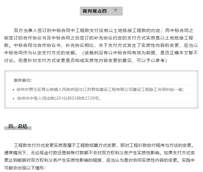 工程款支付方式變更是否構成實質性內容變更——兼議建設工程司法解釋(二)第一條