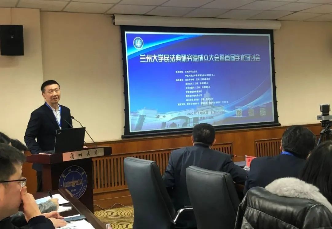 2020年12月31日,在我國《民法典》正式施行的前一天,蘭州大學民法典研究院揭牌成立。作為協(xié)辦單位代表,北京中銀(深圳)律師事務所支部書記謝蘭軍、管委會副主任朱耀龍、毛春華、彭雄杰律師出席了揭牌儀式。謝蘭軍、朱耀龍兩位資深律師從蘭州大學嚴純?nèi)A校長手中接過聘書擔任研究員,謝蘭軍律師作了“向未來致敬、向法治致敬、向蘭大法學院致敬”的發(fā)言。