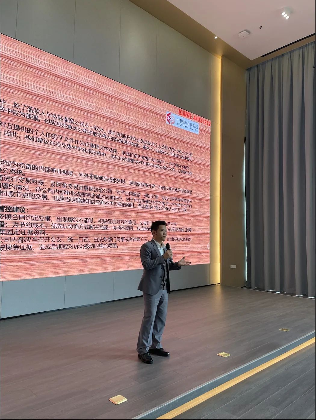 上午10時,講座正式開始,歷時2個小時,公司業(yè)務(wù)、財務(wù)及法務(wù)等多個部門約100位同事參與了本次培訓(xùn)活動。鄭明偉律師先后回顧了公司幾宗訴訟案件的概況,并結(jié)合案件總結(jié)公司目前尚存的法律風(fēng)險,就提及的法律風(fēng)險進(jìn)行總結(jié)升華,進(jìn)而提出八大點的整改意見。培訓(xùn)過程中,不少同事提出自己的疑問,各同事之間相互討論,現(xiàn)場反響良好。