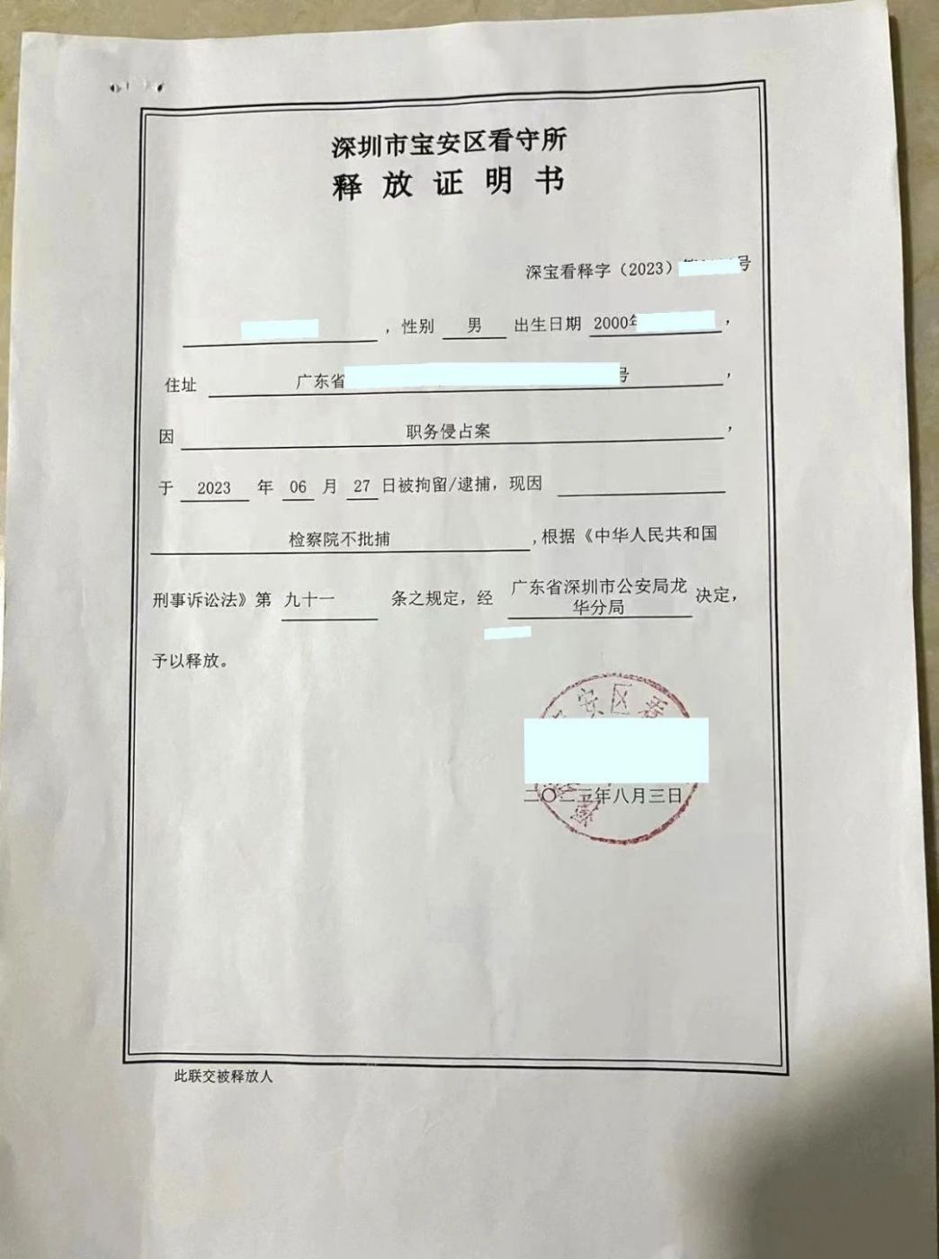 近日,北京中銀(深圳)律師事務所張同兵律師成功為職務侵占罪案件當事人取保候審,通過“仔細研判、審慎定性、有效溝通、積極爭取”,幫助當事人恢復人身自由,取得了本階段良好的辯護效果。