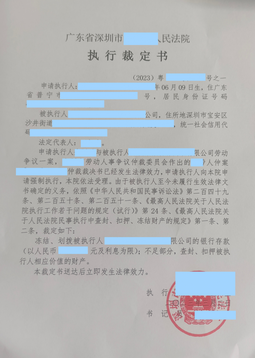 近日,中銀張同兵律師團隊收到某市勞動人事爭議仲裁委員會更正送達的一份作出于2022年9月的仲裁裁決書,以及一份2023年8月的仲裁文書送達證明。自此,該起因送達程序錯誤造成客戶公司錯過起訴期限、即將被執行錯誤裁決結果的勞動爭議案件取得了階段性成果,客戶公司訴訟權利得到有效救濟。案件背景因新型互聯網平臺用工模式產生的爭議,作為勞動仲裁被申請方,客戶公司法定代表人收到某市仲裁委按照正確收件地址但系錯誤電話(但郵局在該次送達過程中已作更正)郵寄的《應訴通知書》,隨后杳無音訊。直到半年后收到對方當事人要求支付高額款項的微信通知方才知曉該案已作出裁決,并且該裁決經公告送達后已生效。該裁決結果對公司極為不利,且可能對公司其他靈活用工人員產生錯誤示范作用,引發系列仲裁,繼而為對客戶公司帶來極大賠償風險。客戶公司急需中止該案強制執行,取得緩沖時間,依法更改現有的錯誤裁決以維護自身權益。
