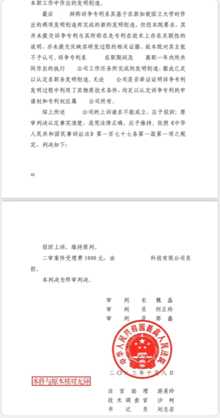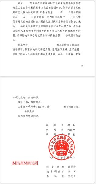 中銀(深圳)律師事務所知識產權團隊在整個代理過程中始終秉持“精耕細作、追求極致、務實高效、打造精品”的工匠精神,歷經兩審、持續4年,最終于2023年10月8日最高人民法院作出(2021)最高法知民終1874號、(2022)最高法知民終202號、(2022)最高法知民終732號民事判決,確認“浸沒式勻壓MBR膜過濾裝置”、“一種具有多種不同過濾性能分區的反滲透膜及其制備方法”、“一種具有多種不同過濾性能分區的反滲透膜”、“一種增強型中空纖維微濾膜的制備方法及制備系統”、“一種增強型中空纖維微濾膜的制備系統”五項核心專利依法歸三泰公司所有,案件取得了良好的法律效果和社會效果。
