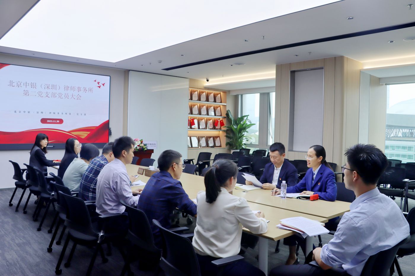 2023年11月30日,北京中銀(深圳)律師事務所第二黨支部召開黨員大會,中共二十大代表巴士集團胡春華同志受邀參加本次黨員大會,中銀深圳黨總支書記謝蘭軍、第二黨支部書記張同兵以及第二黨支部黨員參加會議。
