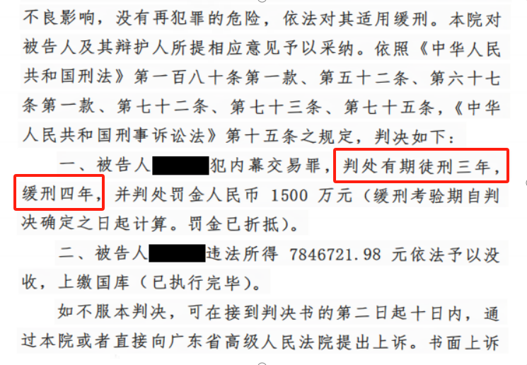 被告人N犯內幕交易罪,判處有期徒刑三年,緩刑四年,并判處罰金人民幣1500萬元(緩刑考驗期自判決確定之日起計算。罰金已折抵)。