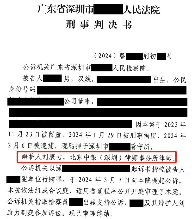 在法庭上,劉康力律師團隊以精湛的法律知識和卓越的辯論技巧,充分闡述了委托人的罪輕情節(jié)。首先,團隊指出委托人在單位犯罪中起到次要作用,并從委托人在犯罪過程中所處地位、職權大小及所起作用等角度進行了充分論證。其次,由于職務犯罪由檢察機關偵查轉變?yōu)楸O(jiān)察機關調查后,《行賄案件司法解釋》第十條是否適用于監(jiān)察調查暫無定論,團隊又從法理角度分析,指出監(jiān)察留置期間委托人主動交待行賄行為屬于“在被追訴前主動交待行賄行為”,可從輕或減輕處罰。最后,團隊又強調了積極退贓等量刑情節(jié),建議遵從“從舊兼從輕”原則適用經(jīng)2015年《中華人民共和國刑法修正案(九)》修正的《中華人民共和國刑法》,并以類案檢索報告結果建議判處有期徒刑二年。