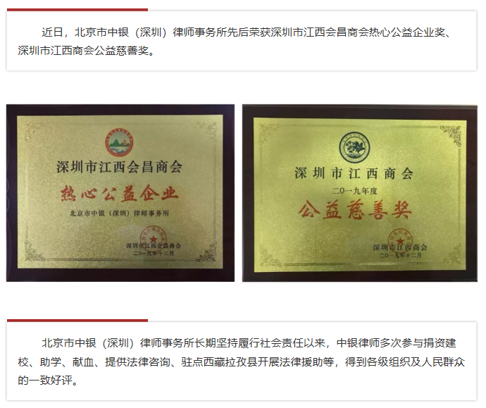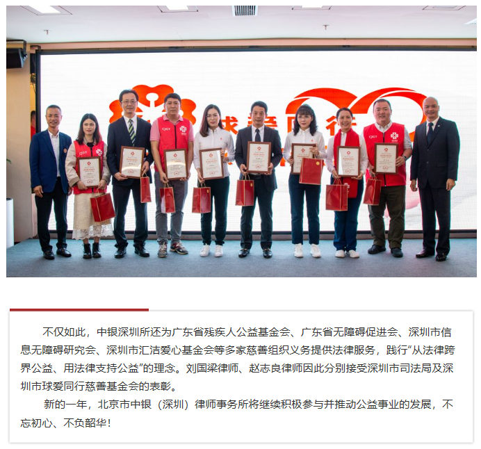 北京市中銀(深圳)律師事務所榮獲公益慈善獎、熱心公益企業獎