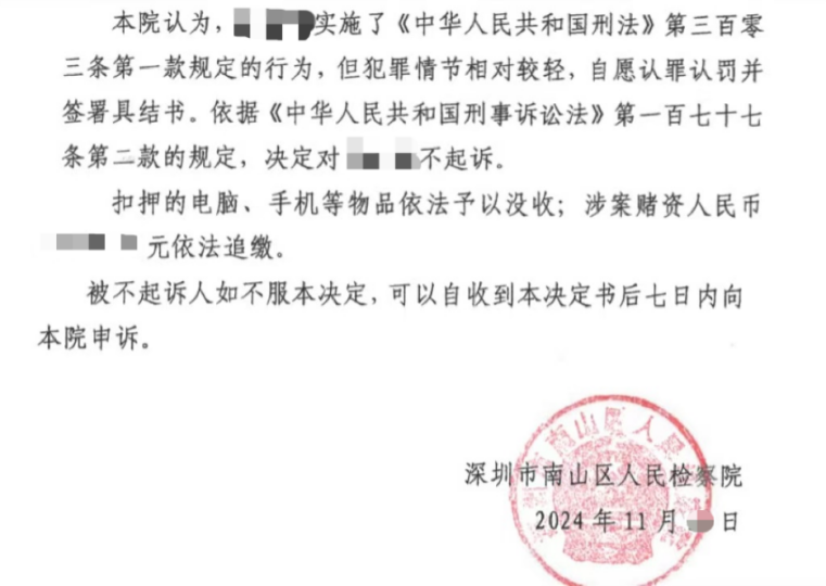 在聽取辯護人的法律意見之后,檢察院結(jié)合全案案情,認定本案當事人觸犯賭博罪,但犯罪情節(jié)相對較輕,并自愿認罪認罰,對其作出不起訴決定。