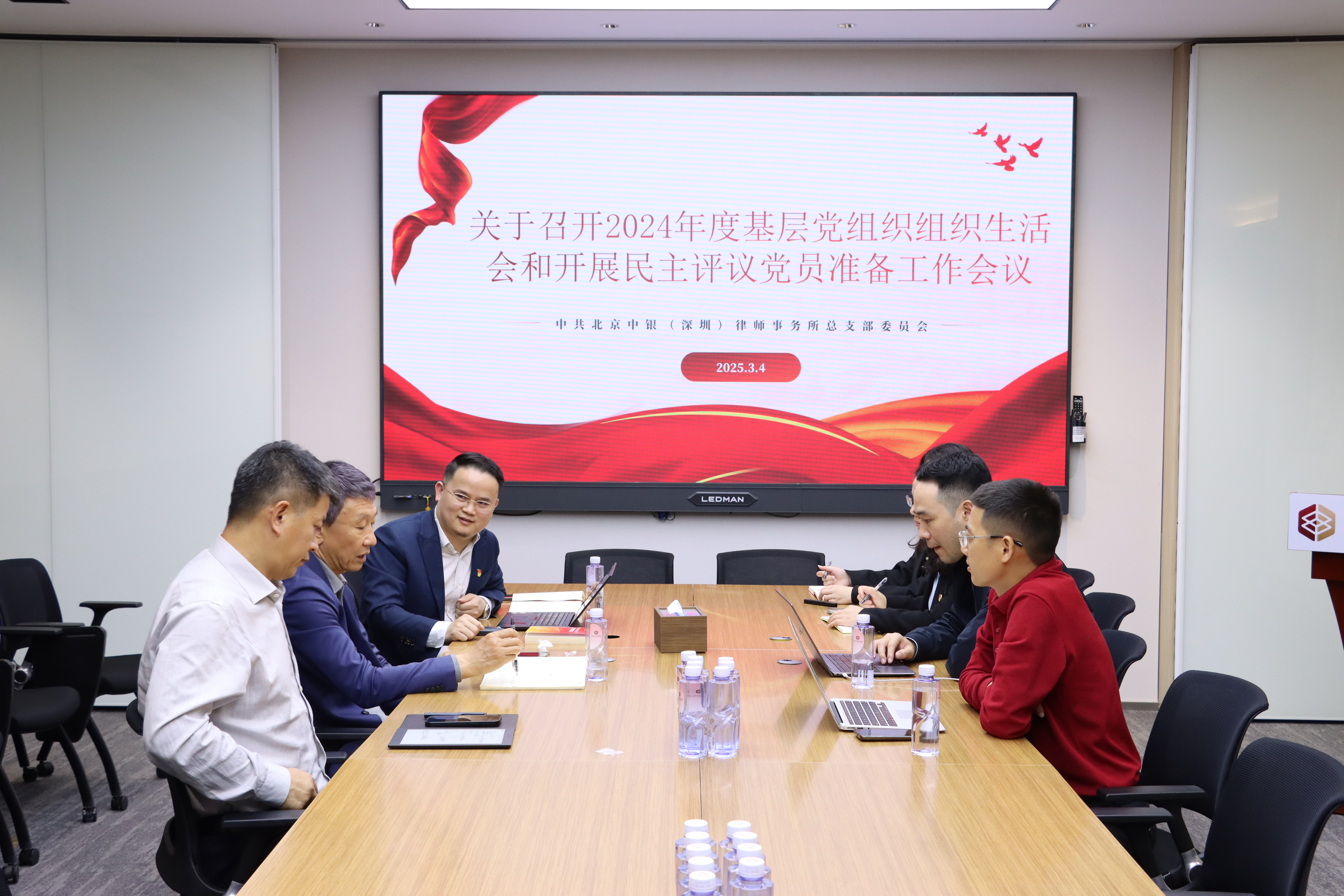 2025年3月4日下午,北京中銀(深圳)律師事務所黨總支召開2024年各支部書記述職工作會議及2025年黨建工作推進會,全面總結2024年黨建工作成果,精心謀劃2025年黨建工作計劃。
