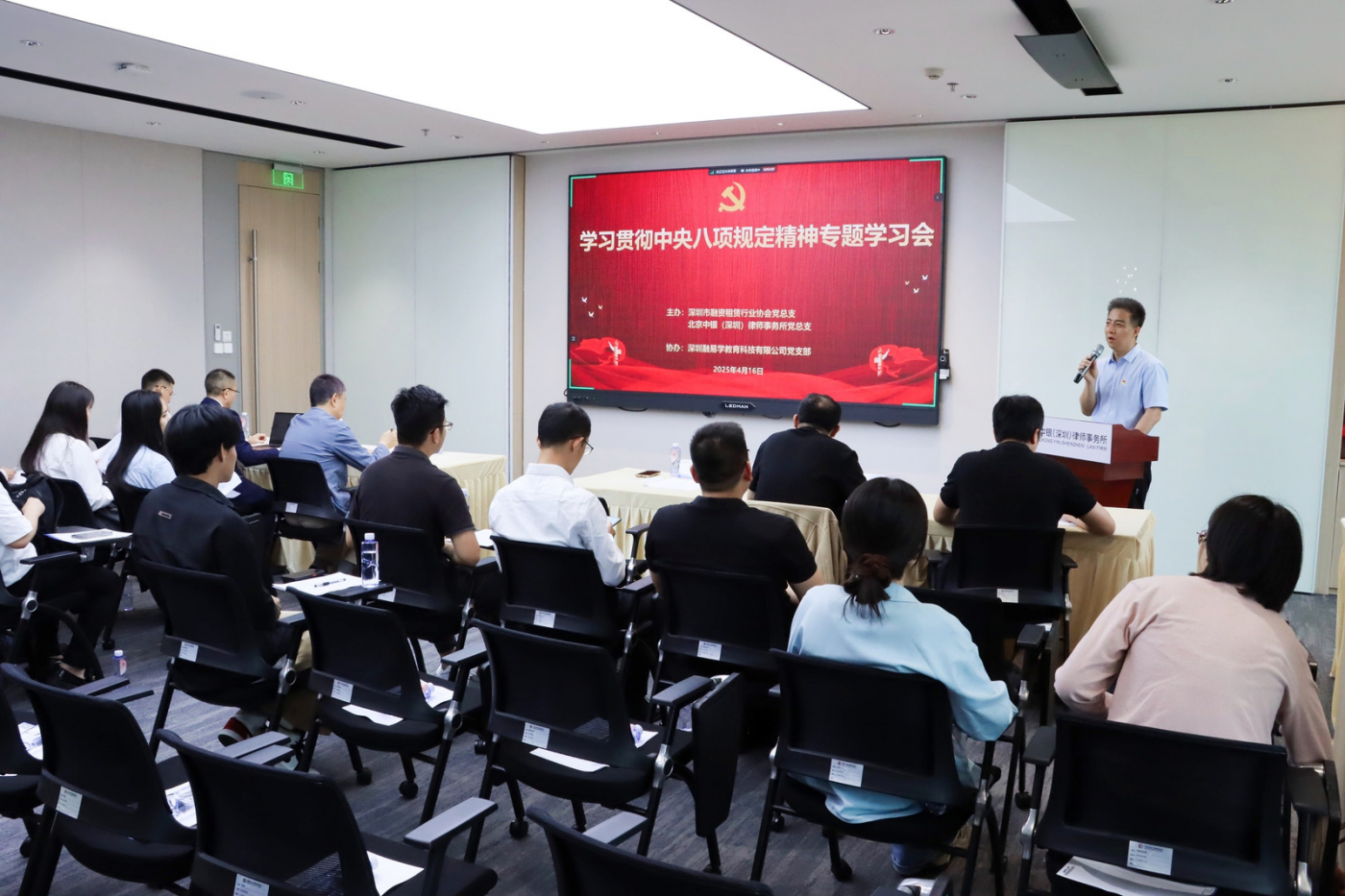2025年4月16日下午,深圳市融資租賃行業(yè)協(xié)會黨總支與北京中銀(深圳)律師事務(wù)所(以下簡稱“中銀深圳”)黨總支,在中銀深圳聯(lián)合舉辦主題培訓(xùn)活動,旨在以黨建引領(lǐng)、專業(yè)培訓(xùn)提升融資租賃行業(yè)合規(guī)與風險管理能力,助力行業(yè)高質(zhì)量發(fā)展。