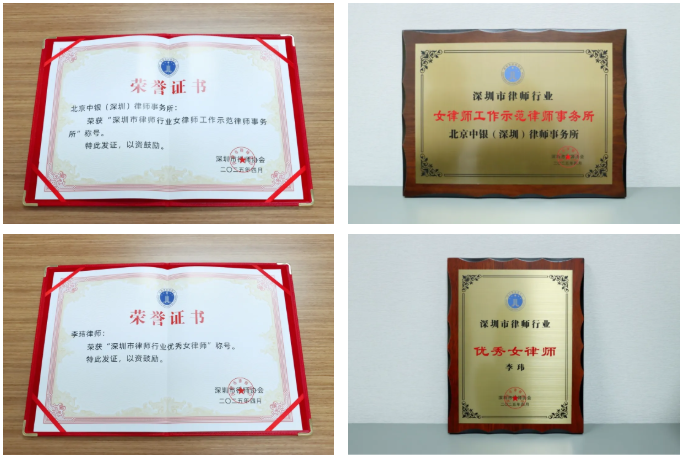 其中,北京中銀(深圳)律所榮獲“深圳市律師行業女律師工作示范律師事務所”稱號;李瑋律師榮獲“深圳市律師行業優秀女律師”稱號。
