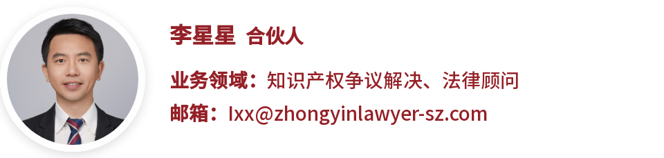 李星星律師專業(yè)從事專利維權(quán)與應(yīng)訴、專利布局、商標(biāo)、版權(quán)保護(hù)以及商業(yè)秘密等法律服務(wù),所承辦案例多次獲最高院改判支持,分別被評(píng)為2021年深圳律師知識(shí)產(chǎn)權(quán)十大典型案例、鄭州市中級(jí)人民法院2022年度知識(shí)產(chǎn)權(quán)司法保護(hù)十大典型案例、2023年福田區(qū)優(yōu)秀行政法律服務(wù)案例、2023年深圳律協(xié)知識(shí)產(chǎn)權(quán)十大典型案例等、中銀總所2023年度優(yōu)秀案例獎(jiǎng)、中銀深圳2024年度優(yōu)秀案例獎(jiǎng)。