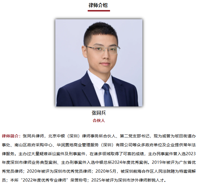 北京中銀(深圳)律師事務所合伙人張同兵獲評為“優秀青年律師”。