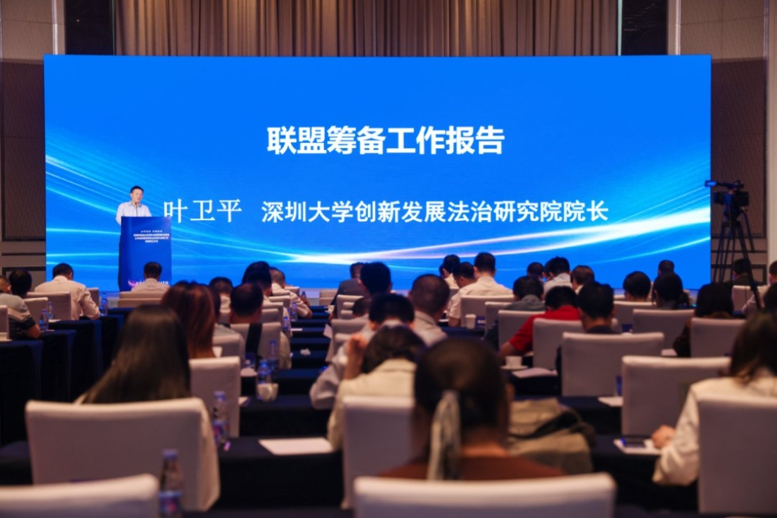 在深圳市企業競爭合規工作聯盟成立大會上,深圳大學創新發展法治研究院院長葉衛平代表聯盟秘書處(籌)作聯盟籌備工作報告。