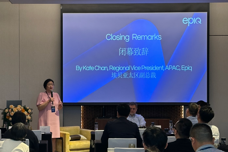 本次分享會最后,埃貝科技(EPIQ)法律解決方案亞太區(qū)副總裁Kate Chan女士致閉幕詞,再次向參會嘉賓介紹了埃貝科技(EPIQ)亞洲業(yè)務(wù)的最新發(fā)展,以及對人工智能在證據(jù)開示領(lǐng)域持續(xù)應(yīng)用的信心和期待。