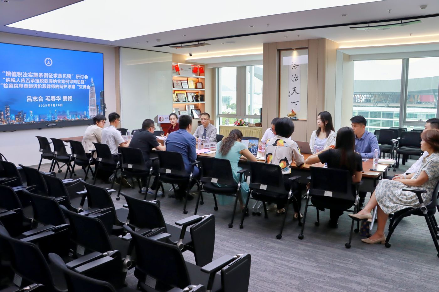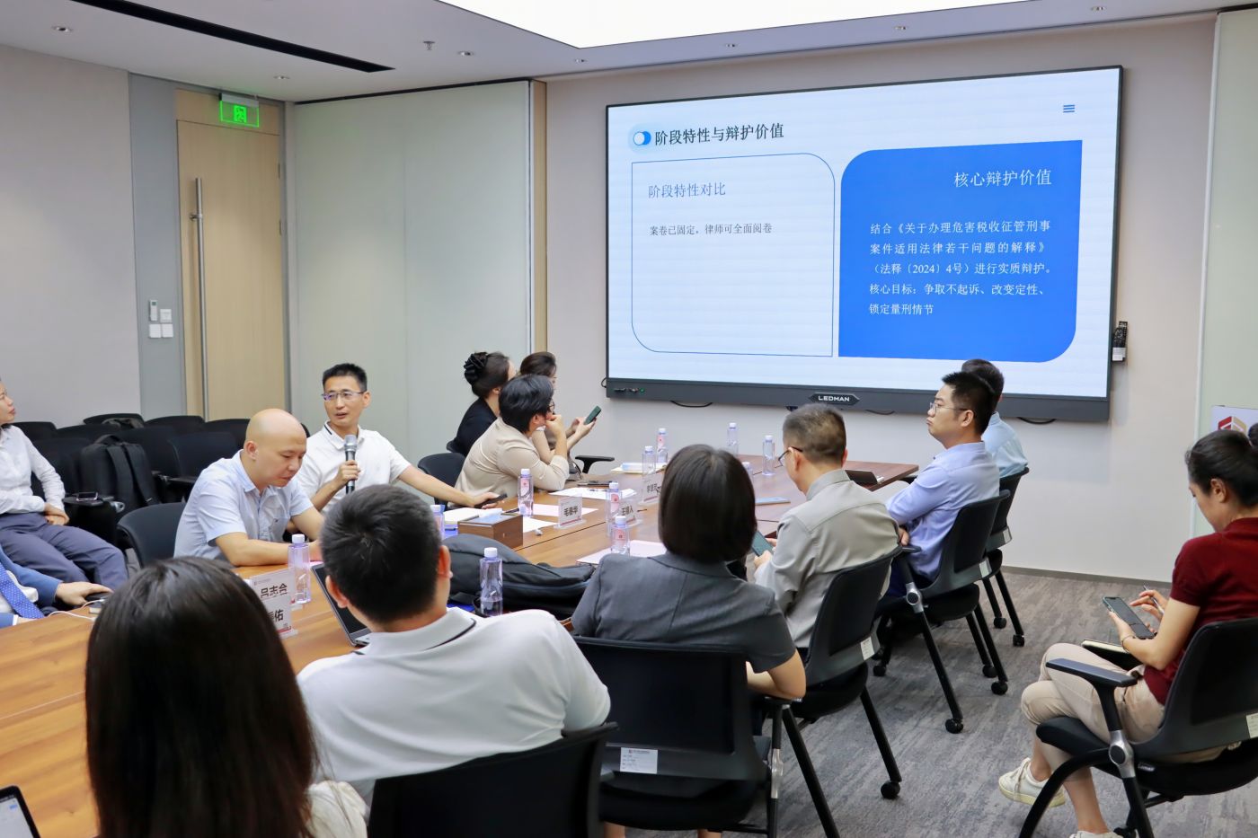 2025年8月28日下午,深圳市律師協會稅務法律專業委員會(簡稱“市律協稅務委”)主辦,北京中銀(深圳)律師事務所企業合規研究中心(簡稱“中銀深圳合規中心”)協辦的“納稅人應否承擔稅款滯納金案例審判思路”及“檢察院審查起訴階段律師的辯護思路”業務交流會在中銀深圳法治天下大會議室順利舉行。中銀深圳監察委主任毛春華律師發表了開場致辭,本次會議由律協稅務委主任呂志合律師主持。