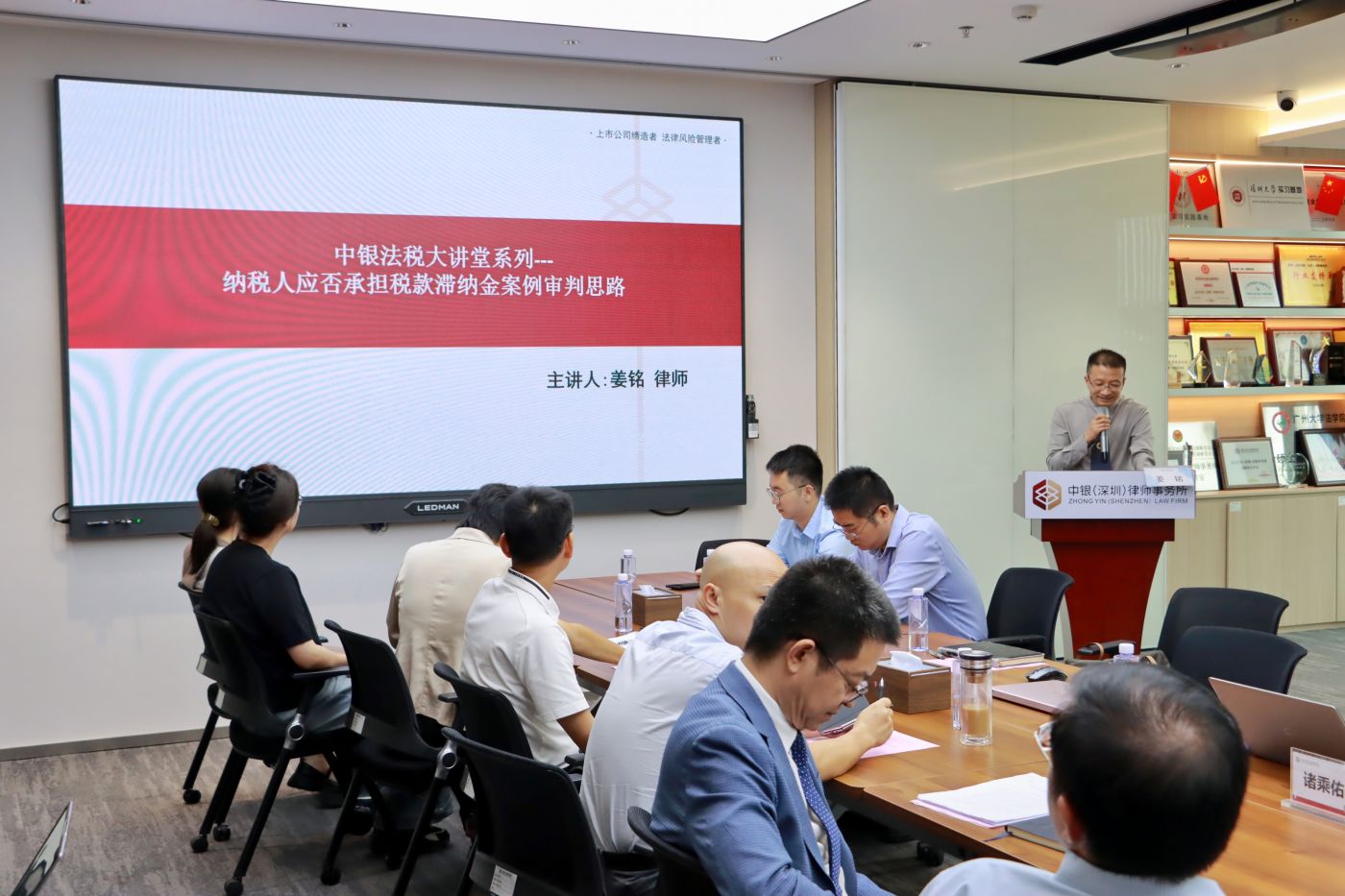 本次會議圍繞“納稅人應否承擔稅款滯納金案例審判思路”及“檢察院審查起訴階段律師的辯護思路”研討,由中銀深圳稅務研究中心副主任姜銘律師和中銀深圳監察委主任毛春華律師分別主講。