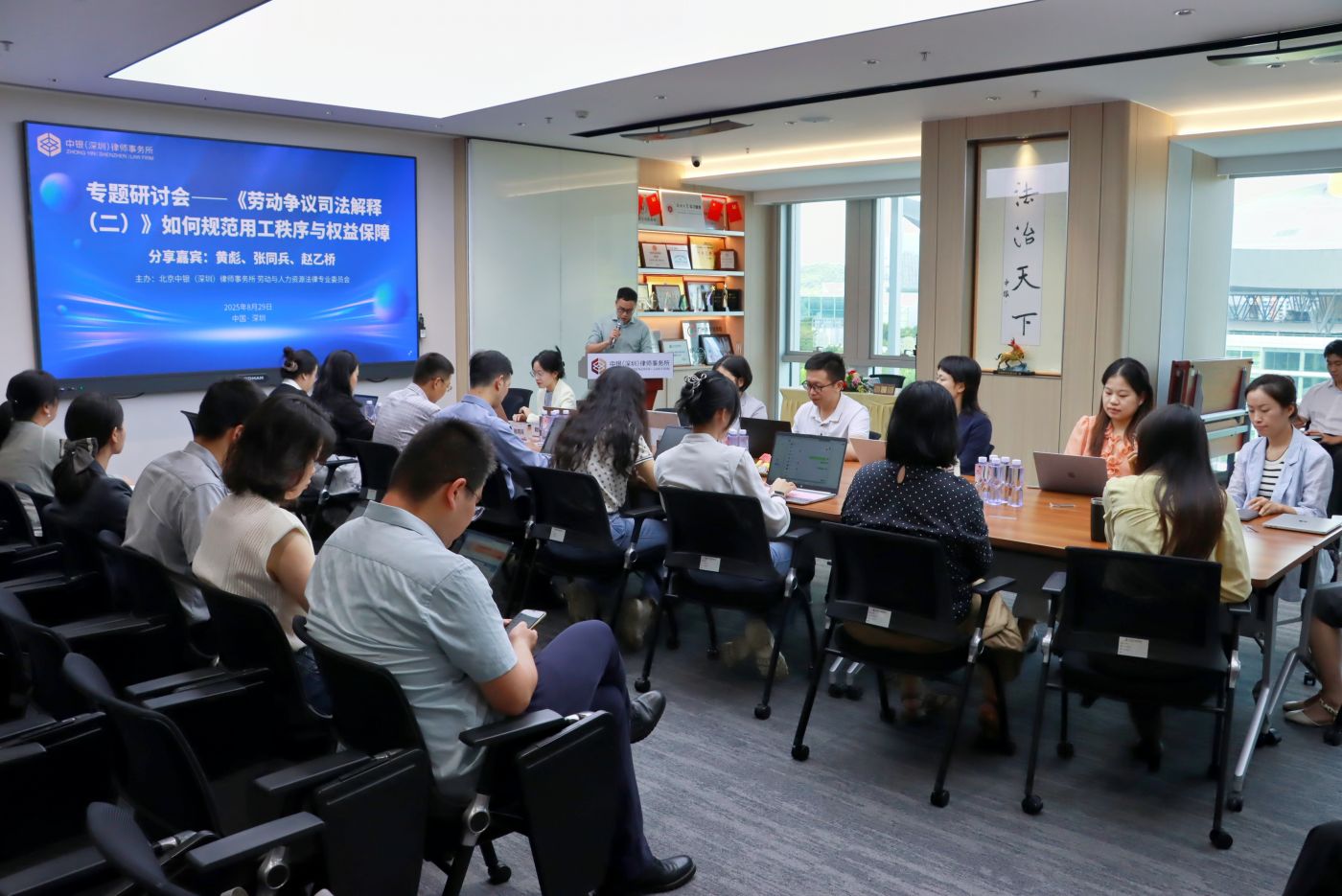 《最高人民法院關(guān)于審理勞動(dòng)爭(zhēng)議案件適用法律問題的解釋(二)》(以下簡(jiǎn)稱:“《勞動(dòng)爭(zhēng)議司法解釋(二)》”)將于2025年9月1日起施行,為深入理解新司法解釋給企業(yè)用工與勞動(dòng)者權(quán)益帶來的影響,2025年8月29日下午,北京中銀(深圳)律師事務(wù)所(以下簡(jiǎn)稱:“中銀深圳”)勞動(dòng)與人力資源法律專業(yè)委員會(huì)舉辦了“《勞動(dòng)爭(zhēng)議司法解釋(二)》如何規(guī)范用工秩序與權(quán)益保障”專題研討會(huì)。
