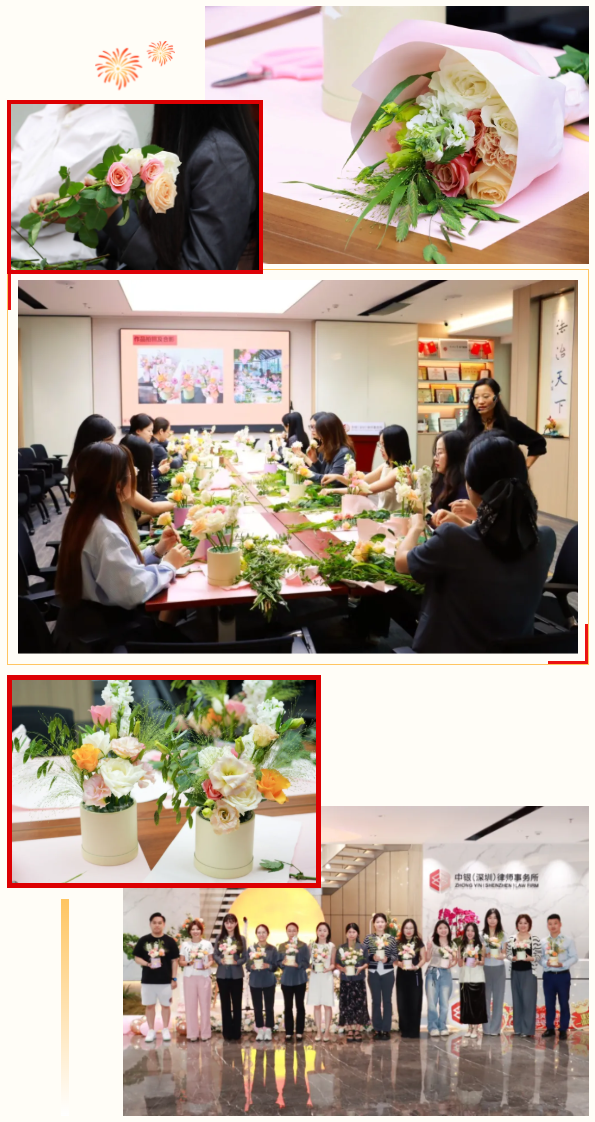 花香盎然,律所大廳化作一片花海。大家修枝剪葉、構思搭配,一籃籃獨具匠心的插花作品映入眼簾。正如法律工作追求條理與平衡,插花亦是在紛繁中呈現秩序與寧靜之美。