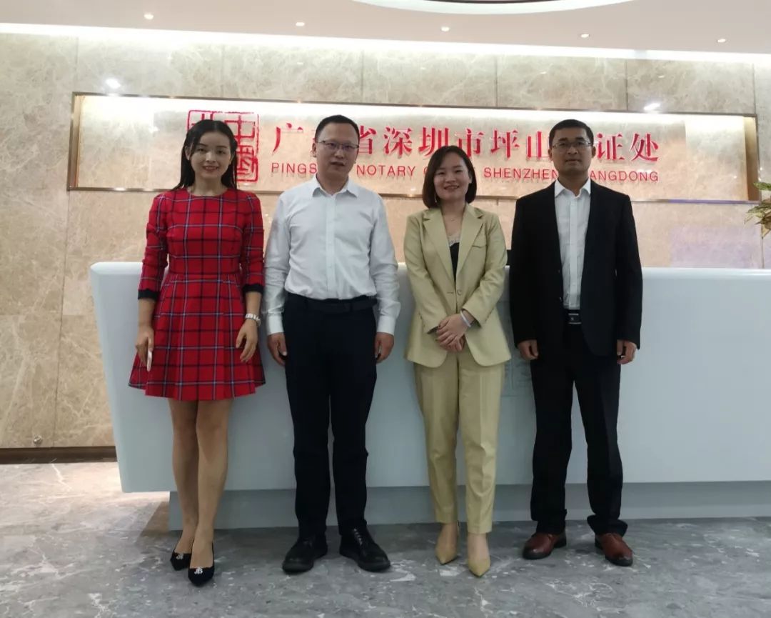 2020年11月17日下午,中銀律所婚姻家事及財富傳承專業委員會主任貢小娟律師、副主任康倩蘭律師及委員王陽柯律師一行赴深圳市坪山公證處交流學習。
