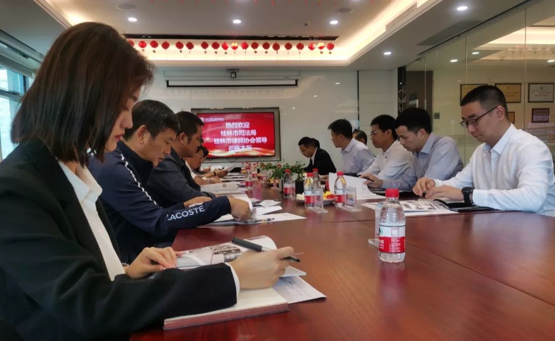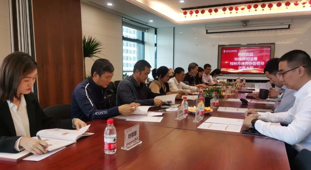 2020年11月18日下午,桂林市司法局黨組成員、副局長(zhǎng)、市律協(xié)行業(yè)黨委書記董忠,律師協(xié)會(huì)副會(huì)長(zhǎng)吳海云,司法局律師工作科科長(zhǎng)鄒淇,律師行業(yè)黨委專職副書記沈先鋒,律師協(xié)會(huì)理事高強(qiáng)。桂林市所轄縣永福縣司法局黨組書記、局長(zhǎng)李加喜,平樂縣司法局黨組成員、副局長(zhǎng)邱桂平及深圳市司法局律師公證管理處四級(jí)主任科員彭斌,深圳市律師協(xié)會(huì)辦公室葉翠翠蒞臨本所交流指導(dǎo)。